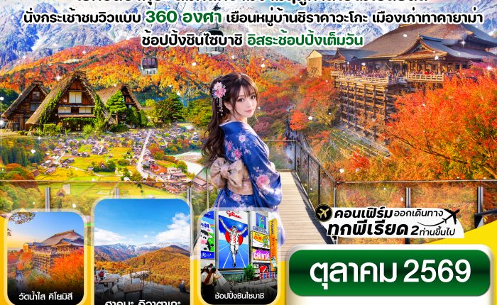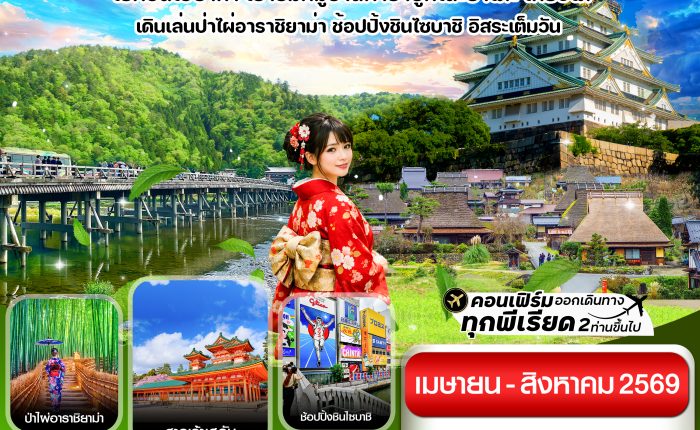 01 โอซาก้า เกียวโต อิสระช้อปปิ้ง 1 วันเต็ม 5วัน 3คืน บิน XJ (APR-AUG26)