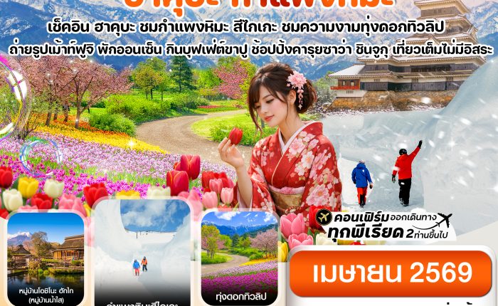03 โตเกียว ฮาคุบะ สึไกเกะกำแพงหิมะ ทิวลิป เที่ยวเต็มไม่มีอิสระ 6วัน 4คืน บิน XJ (APR26)