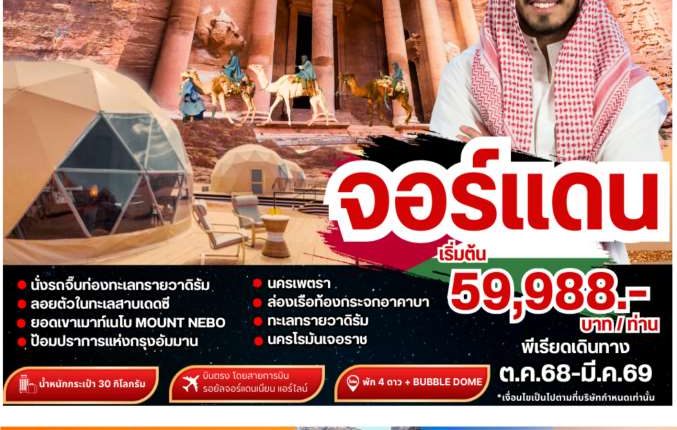 THE STUNNING JORDAN บินตรง RJ BUBBLE DOME 6วัน 3คืน Oct 2025 – Mar 2026 (59,988)