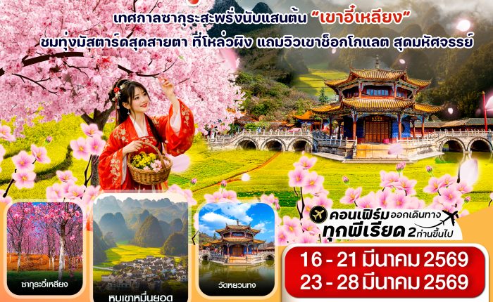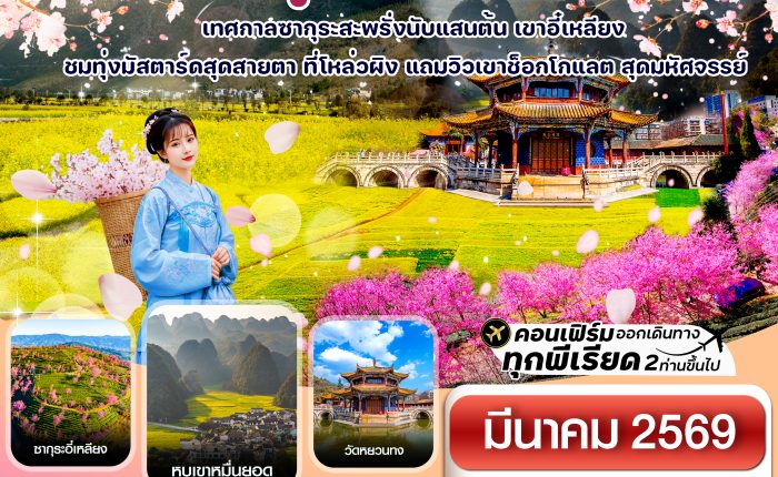 44 คุนหมิง-ป่าหิน-ซากุระอี๋เหลียง-ทุ่งมัสตาร์ด 5วัน4คืน(MU) March 26