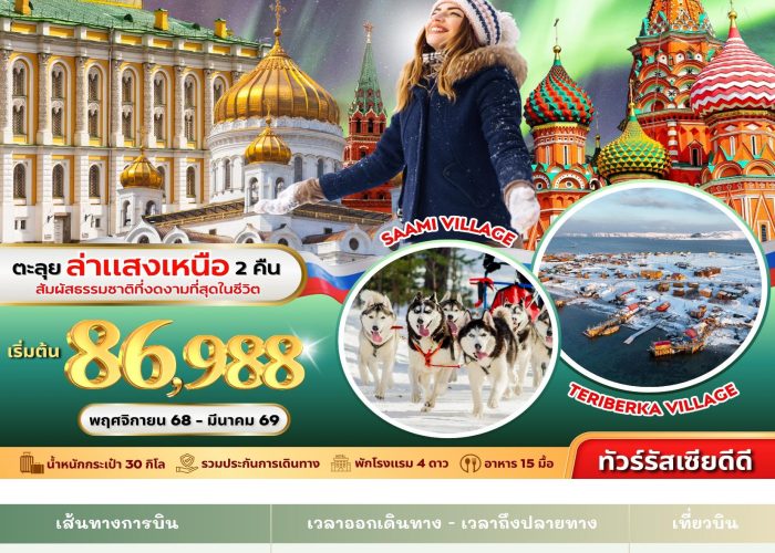 GLOWING AURORA RUSSIA 7วัน 5คืน Nov 2025 – Mar 2026 (86,988)