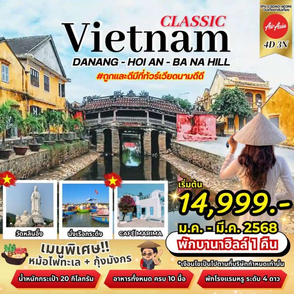 DANANG-HOI AN-BANAHILL ดานัง-ฮอยอัน-บานาฮิลล์ 4 วัน 3 คืน Oct – Dec 2025 (9,999)