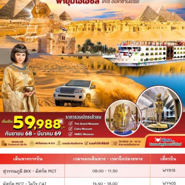 LOVE IN EGYPT 6D4N BY WY พิเศษ!! 3 Museums – Fayoum Oasis – Diner Cruise 6วัน 4 คืน Oct 2025 – Mar 2026 (59,988)
