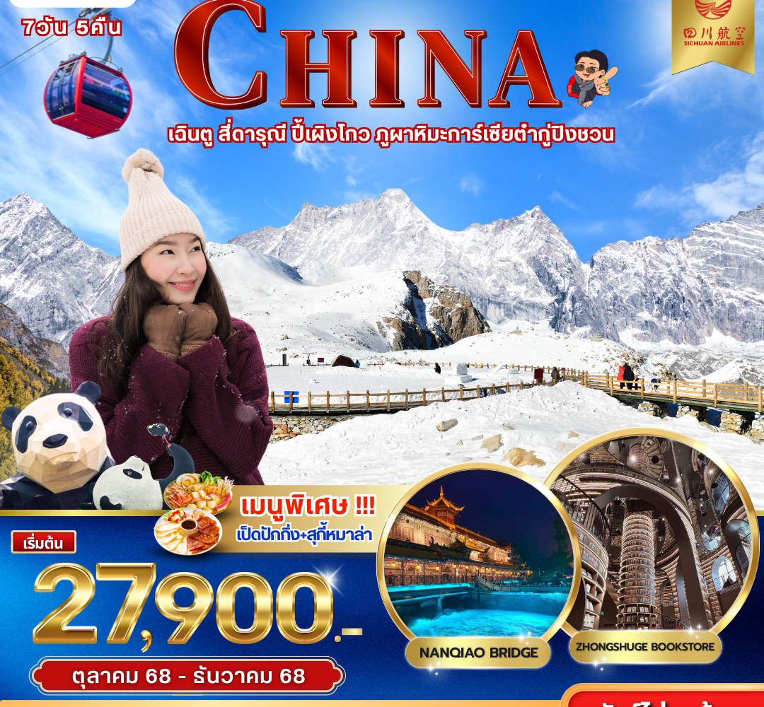 29 เฉินตู สี่ดารุณี ปี้เผิงโกว ภูผาหิมะการ์เซียต๋ากู่ปิงชวน 7วัน 5 คืน Nov – Dec 2025 (27,900)
