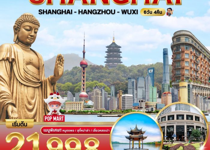 เซี่ยงไฮ้ – หางโจว – อู๋ซี ทัวร์ไม่ลงร้าน 6วัน 4คืน Oct – Dec 2025 (21,998)