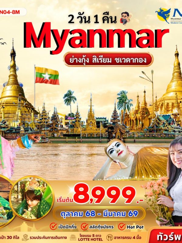 ย่างกุ้ง-สิเรียม-ชเวดากอง 2 วัน 1 คืน Oct 2025 – Mar 2026 (8,999)