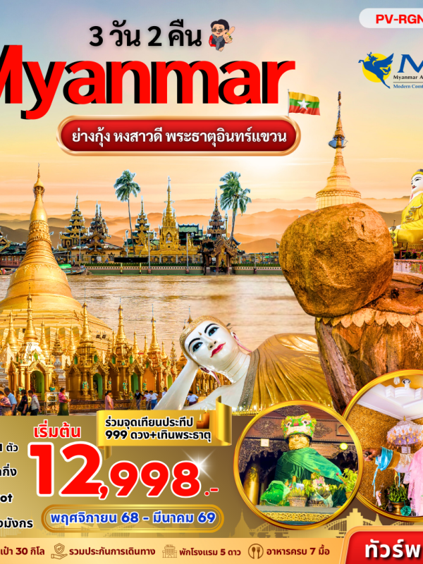 ย่างกุ้ง อินแขวน 3 วัน 2 คืน BY 8M Nov 2025 – Mar 2026 (12,998)