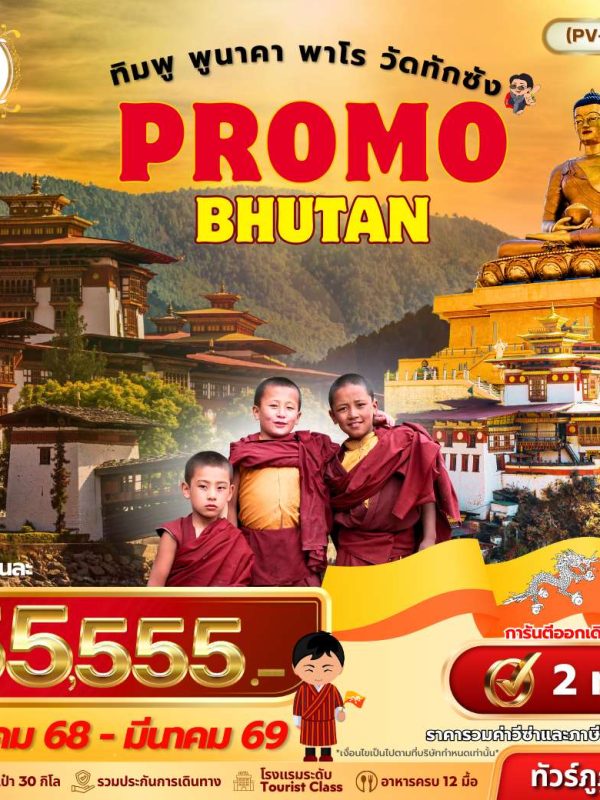 Promo Bhutan ทิมพู พูนาคา พาโร วัดทักซัง 5วัน 4คืน Dec 2025 – Mar 2026 (55,555)