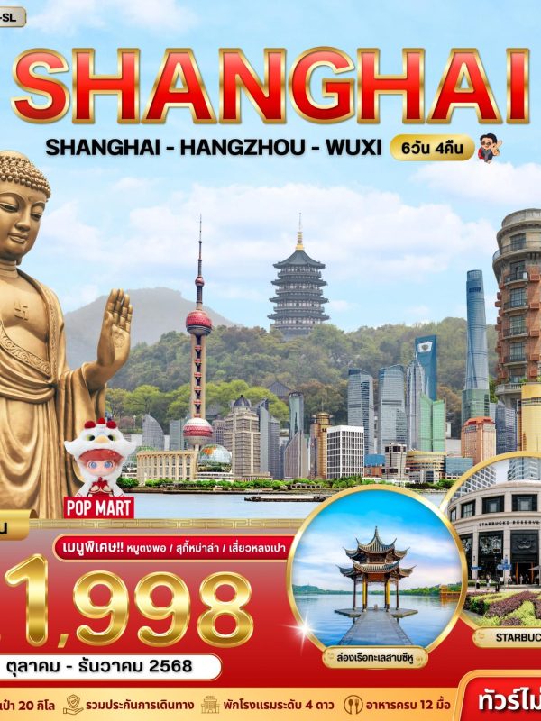 เซี่ยงไฮ้ – หางโจว – อู๋ซี ทัวร์ไม่ลงร้าน 6วัน 4คืน Oct – Dec 2025 (21,998)