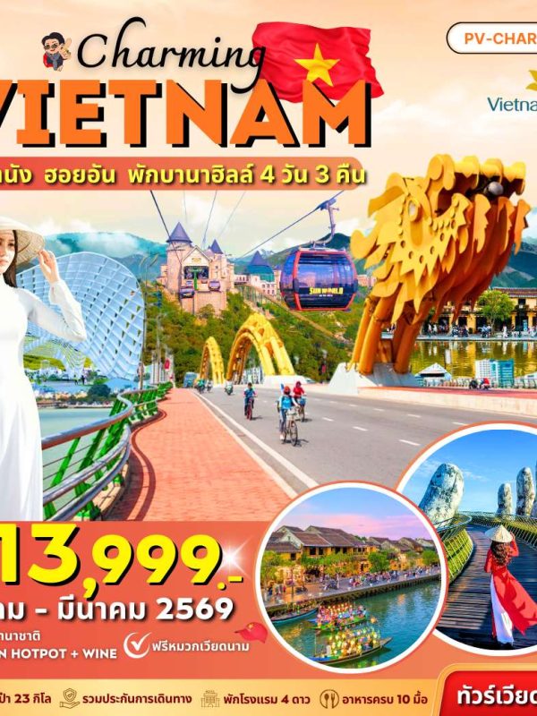 CHARMING VIETNAM ดานัง ฮอยอัน พักบานาฮิลล์ 4 วัน 3 คืน Jan – Mar 2026 (13,999)