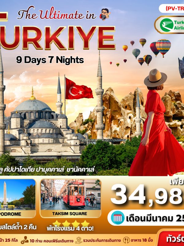 HELLO TURKIYE อิสตันบลู ปามุคคาเล่ คัปปาโดเกีย 9 วัน 7 คืน Feb – July 2026 (47,988)