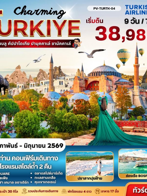 Charming Turkiye อิสตันบลู คัปปาโดเกีย ปาบุคคาเล่ 9 วัน 7 คืน Feb – Jun 2026 (38,988)