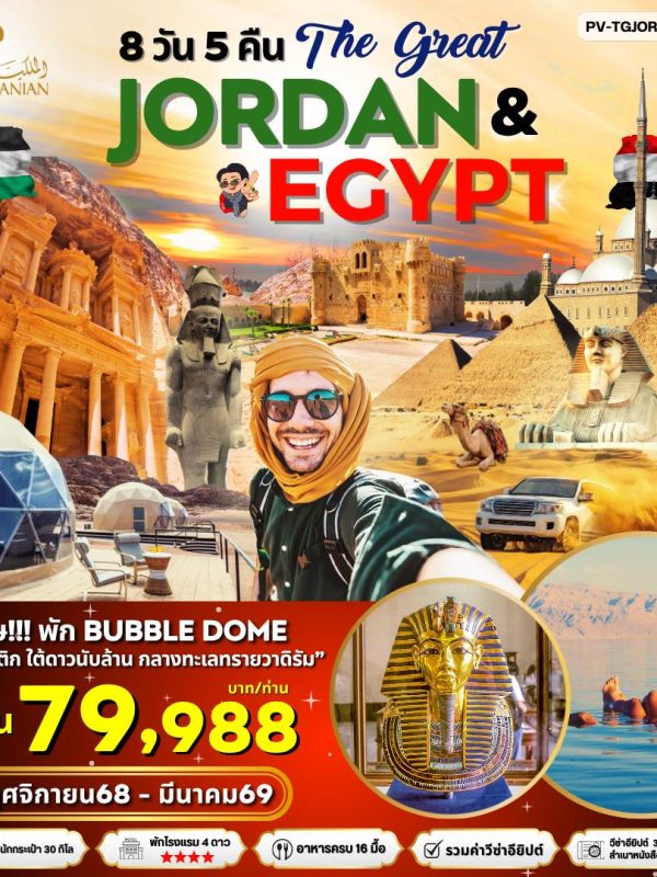 JORDAN – EGYPT เที่ยว 2 ประเทศ ไฮไลท์!!! เข้าชม 2 พิพิธภัณฑ์ + พัก BUBBLE DOME 8วัน 5คืน Jan – May 2026 (79,988)