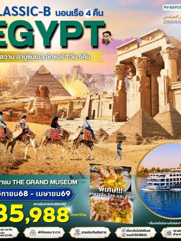 CLASSIC-A-EGYPT มนต์เสน่ห์แห่งลุ่มแม่น้ำไนล์ เข้า THE GRAND MUSEUM 7วัน 5 คืน Nov 2025 – Apr 2026 (85,988)