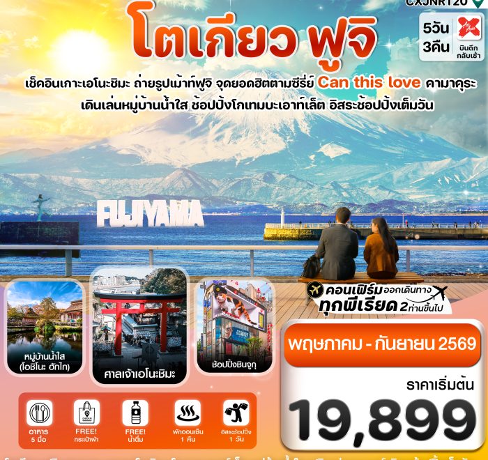 01 โตเกียว ฟูจิ เอโนชิมะ อิสระช้อปปิ้งเต็มวัน 5วัน3คืน บิน XJ (MAY-SEP 2026)