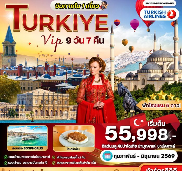 VIP TURKIYE บินภายใน 1 เที่ยว 9 วัน 7 คืน Feb – Jun 2026 (55,998)