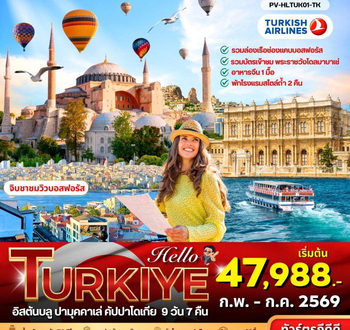 HELLO TURKIYE อิสตันบลู ปามุคคาเล่ คัปปาโดเกีย 9 วัน 7 คืน Feb – July 2026 (47,988)