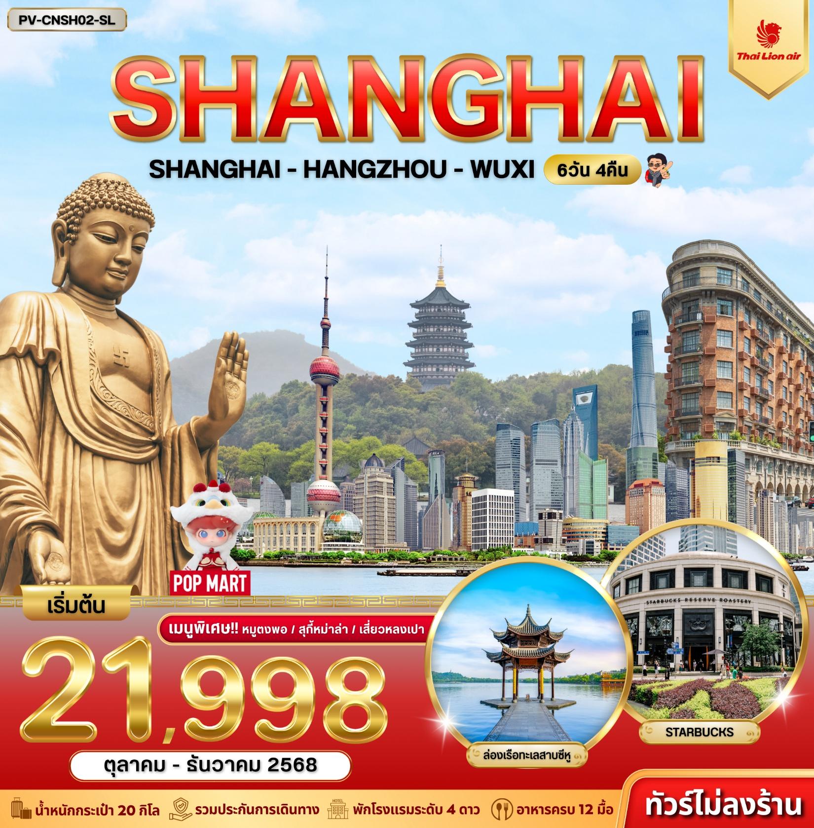 เซี่ยงไฮ้ – หางโจว – อู๋ซี ทัวร์ไม่ลงร้าน 6วัน 4คืน Oct – Dec 2025 (21,998)