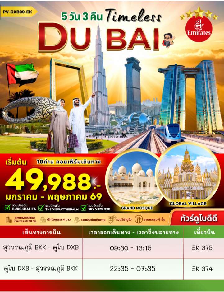 Timeless Dubai 5 วัน 3 คืน Jan – May 2026 (49,988)